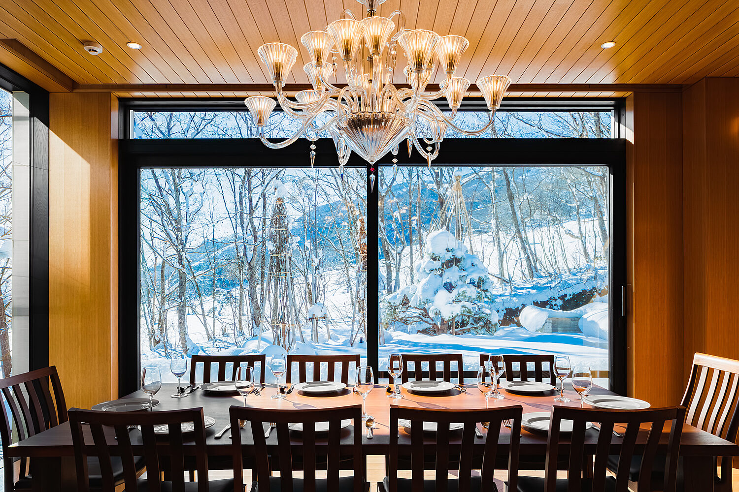リビングからは白馬の雄大な自然が広がり、日常の慌ただしさを忘れさせてくれる空間が広がります。目の前は八方尾根咲花ゲレンデスキー場、スキーイン、スキーアウトが可能です。
